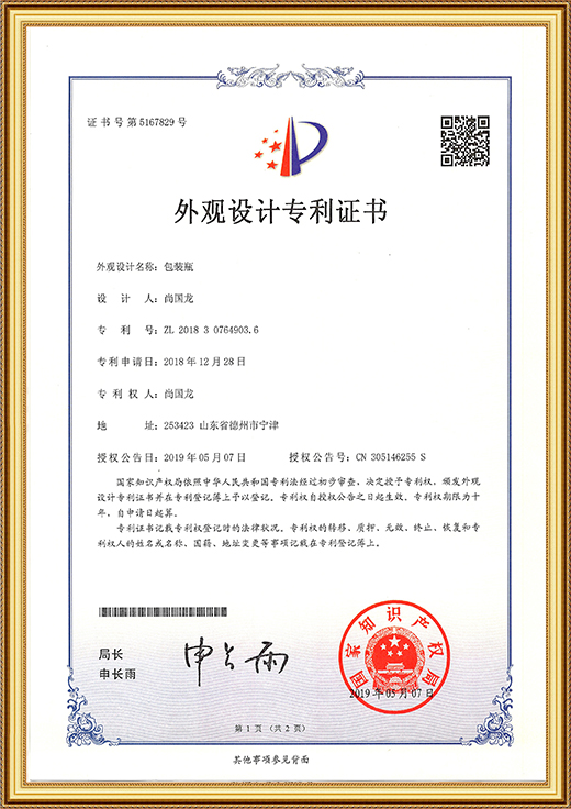 實(shí)用新型專利證書(shū)(一種空氣凈化產(chǎn)品生產(chǎn)裝置